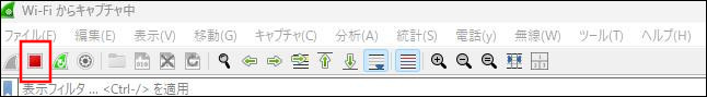 4.操作が終わったら、ツールバーの赤い四角アイコンをクリックして、パケットキャプチャを終了します。